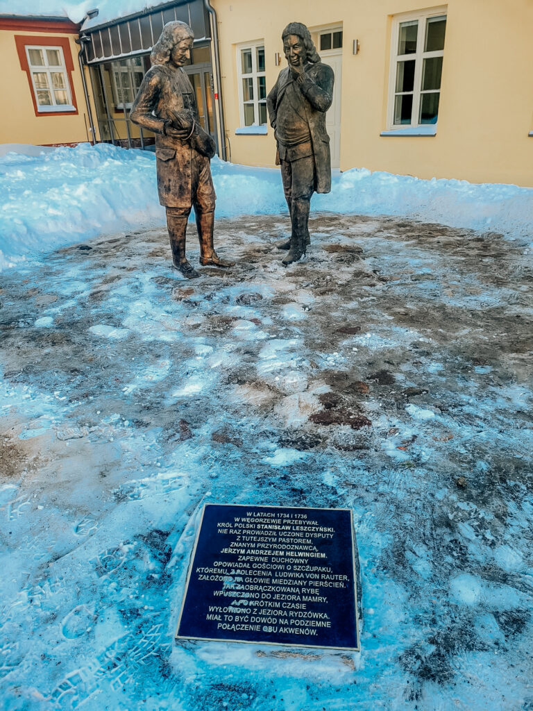 Rzeźby autorstwa Piotra Bogdaszewskiego oglądać można przed siedzibą Muzeum Kultury Ludowej w Węgorzewie. Wykonane są z cementu rzeźbiarskiego i pokryte opiłkami brązu.
