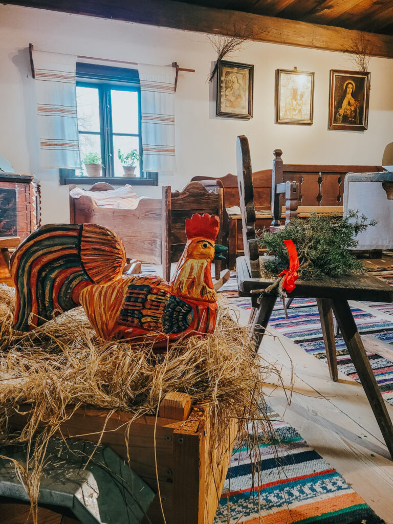 NIEDZIELA WIELKANOCNA – pierwszym punktem tego ważnego dnia było budzenie mieszkańców wsi na Rezurekcję przez kapelę ludową. Kapela skoro świt śpiewała i wołała: „Wstańcie, Pana Boga chwalcie, bo Pan Chrystus zmartwychwstał!”. Po mszy wszyscy szybko udawali się do domów na uroczyste śniadanie. Wedle zwyczaju, kto dotarł do domu pierwszy – miał mieć szczęście w danym roku.